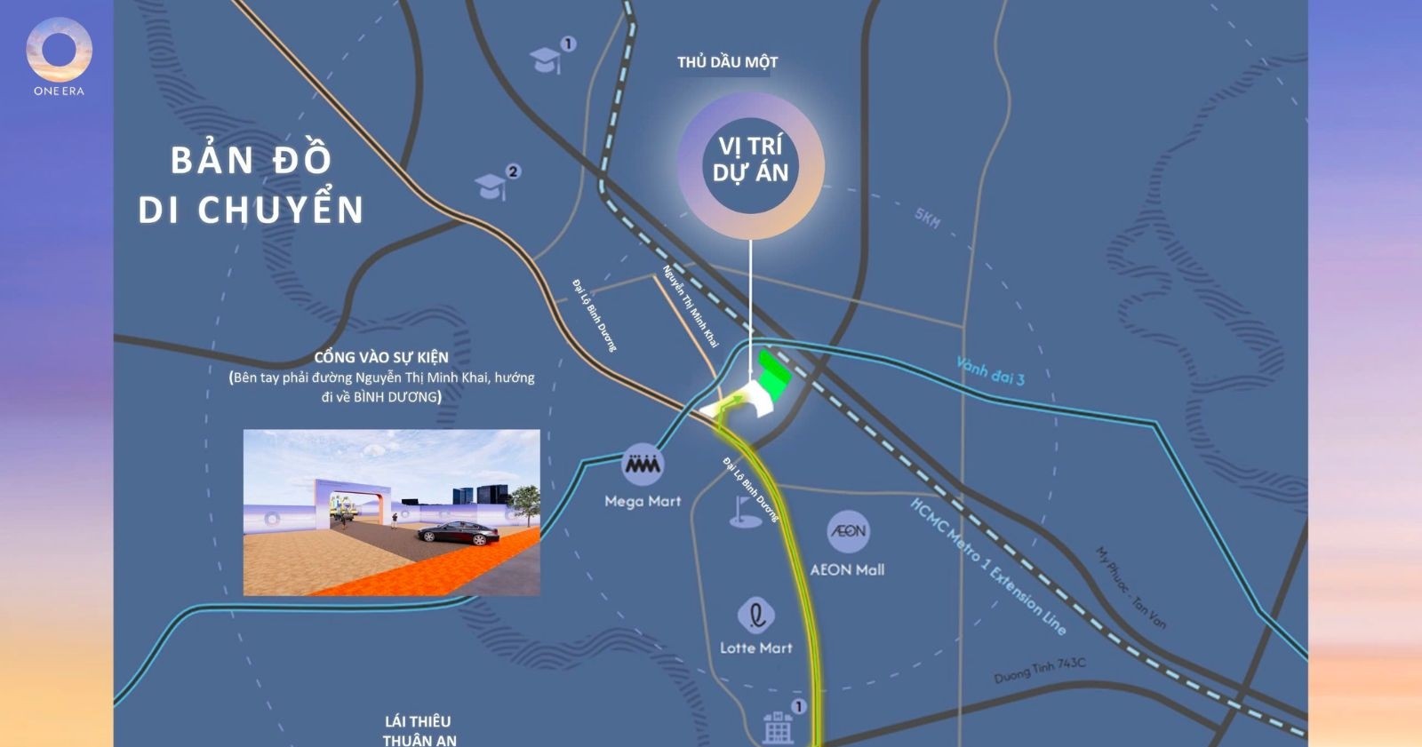 Đặc biệt, dự án nằm tại tâm điểm mũi tàu Nguyễn Thị Minh Khai – Quốc lộ 13, liền kề Vành đai 3 TP.HCM, giúp việc kết nối vùng trở nên thuận tiện và thông suốt. Hạ tầng giao thông hiện đại, đồng bộ và không gian đô thị đang phát triển mạnh mẽ đã góp phần đưa One Era trở thành lựa chọn xứng tầm cho những chủ nhân thời thượng và nhà đầu tư thông minh, khẳng định giá trị vững bền theo thời gian.