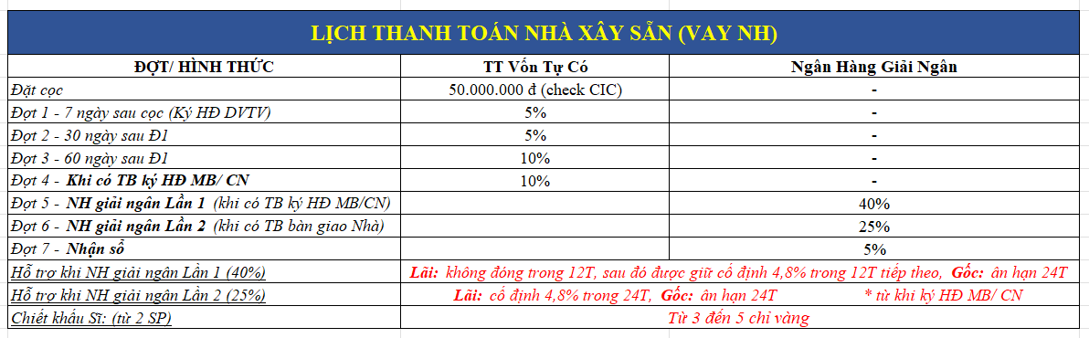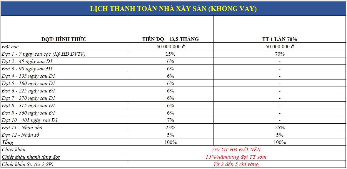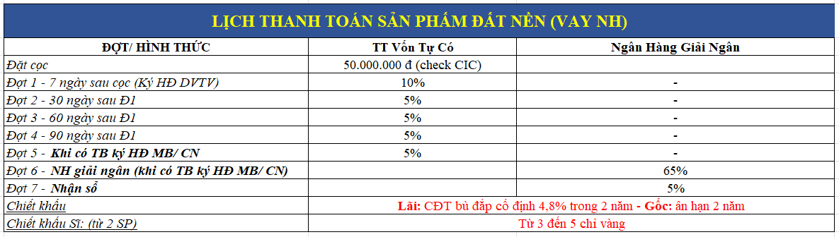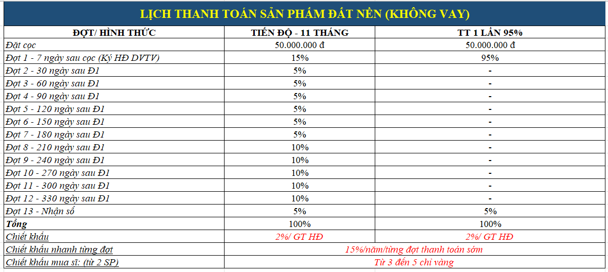 5.1. Thanh toán tiến độ Đất Nền bằng Vốn tự có: